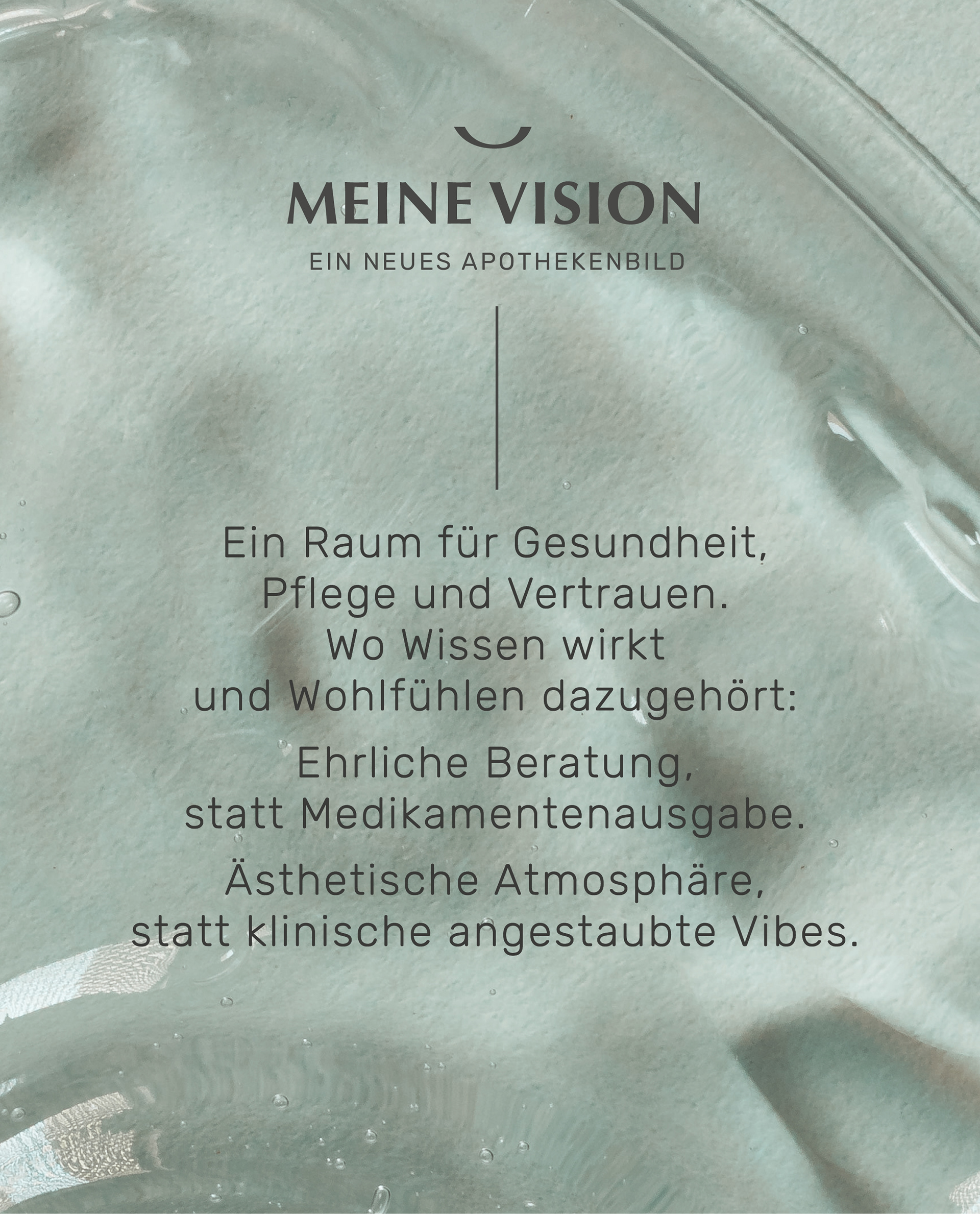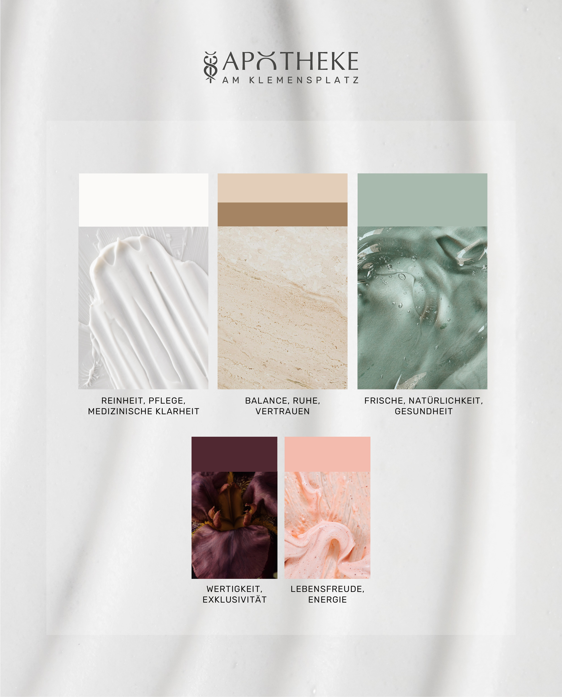 Genau dieses Gefühl sollte das Brand Design transportieren. Ein rundes Gesamtbild, das Vertrauen schafft und neue Perspektiven öffnet. Klar in der Haltung, ruhig und ästhetisch in der Wirkung, menschlich im Kern, mit dem Anspruch, neue Maßstäbe zu setzen. Nicht nur in Apotheken, sondern hineinreichend bis in Pharmazie und Medizin. Dem Thema eine Seele zu geben und ein Gefühl zu schaffen, das bleibt.